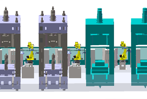 5機(jī)聯(lián)動(dòng)機(jī)器人焊接系統(tǒng);變位機(jī)承載能力達(dá)到1噸,適用于多型號(hào)動(dòng)臂斗桿結(jié)構(gòu)件的焊接;反變形及夾緊定位一體化設(shè)計(jì)伺服夾具,與工件自 動(dòng)化柔性輸送系統(tǒng)配合,可實(shí)現(xiàn)多種型號(hào)工件的自動(dòng)裝夾。